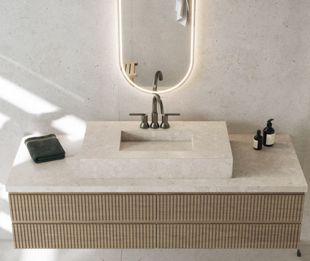- Higieniškas ir antibakterinis. Paviršius visiškai sandarus, nesugeria kvapų, nesikaupia bakterijos – puikus sprendimas virtuvės ar vonios zonoms.