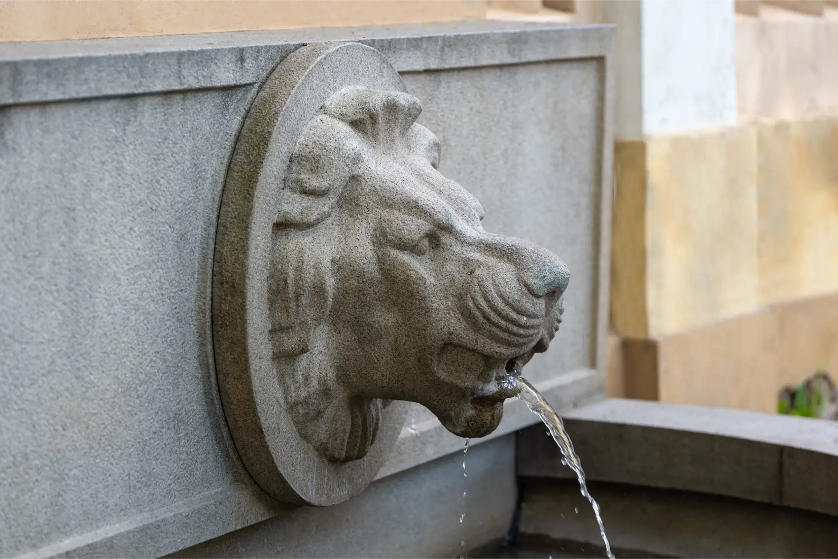 Dekoratyvinis fontanas senamiesčio skvere – nuostabi granito plastika iš suomiško Kuru Grey granito