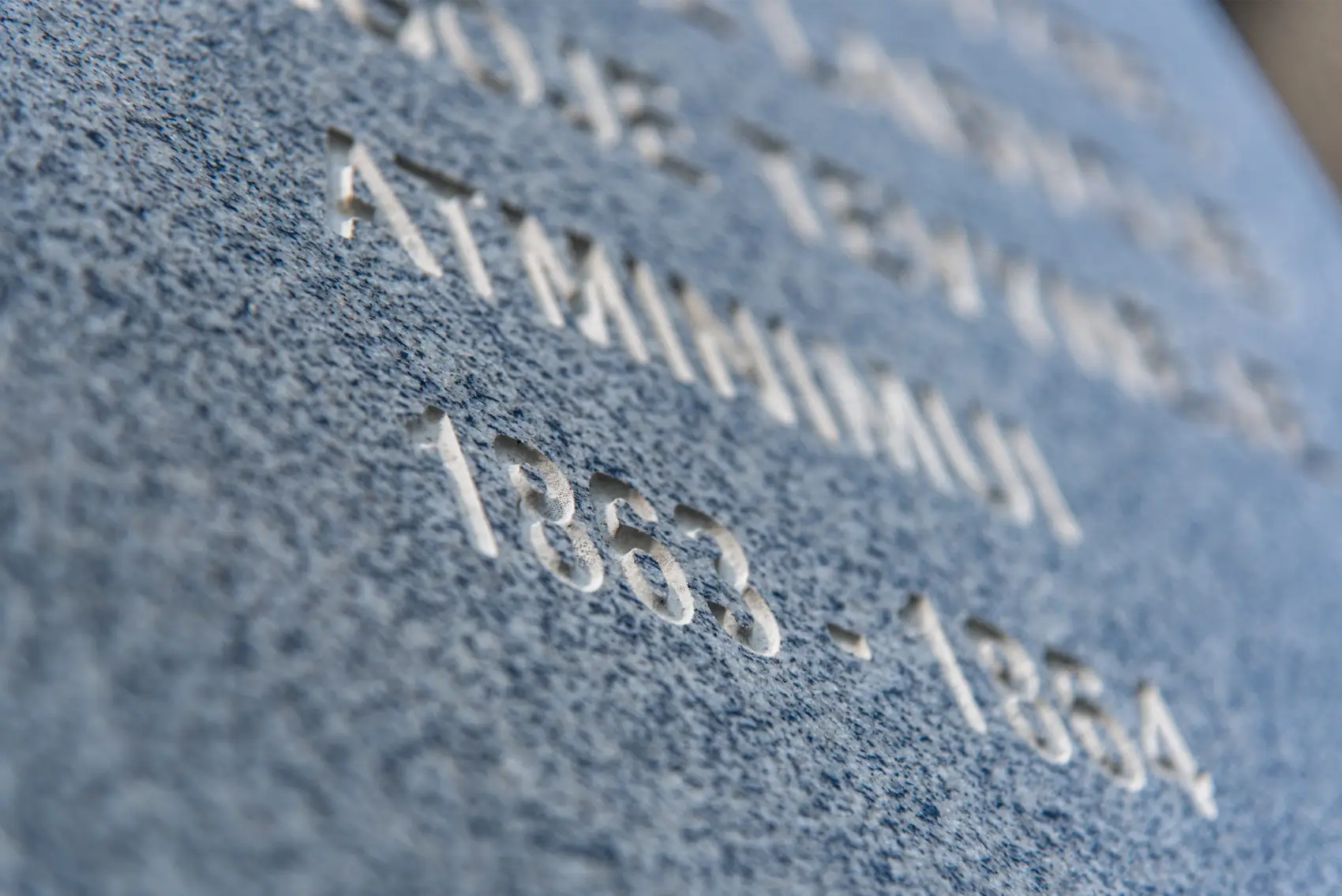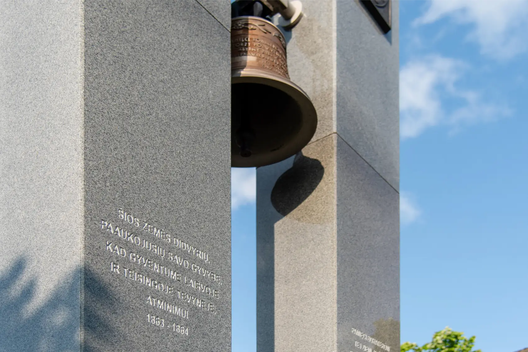 - Įrašai smėliuoti iki 10 mm gylio ir dažyti – tokio tikslumo ir gylio graviravimas galimas tik naudojant „Žybartuva“ specializuotą technologiją.