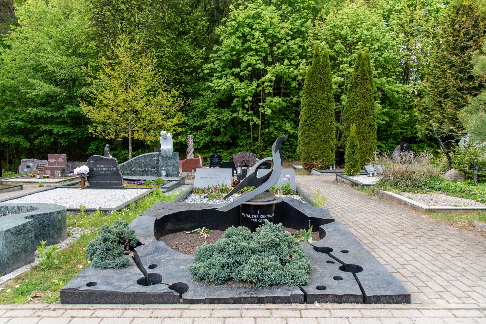 Juodojo granito elegancija Vytauto Kernagio atminimui – išskirtinis paminklas Menininkų kalnelyje