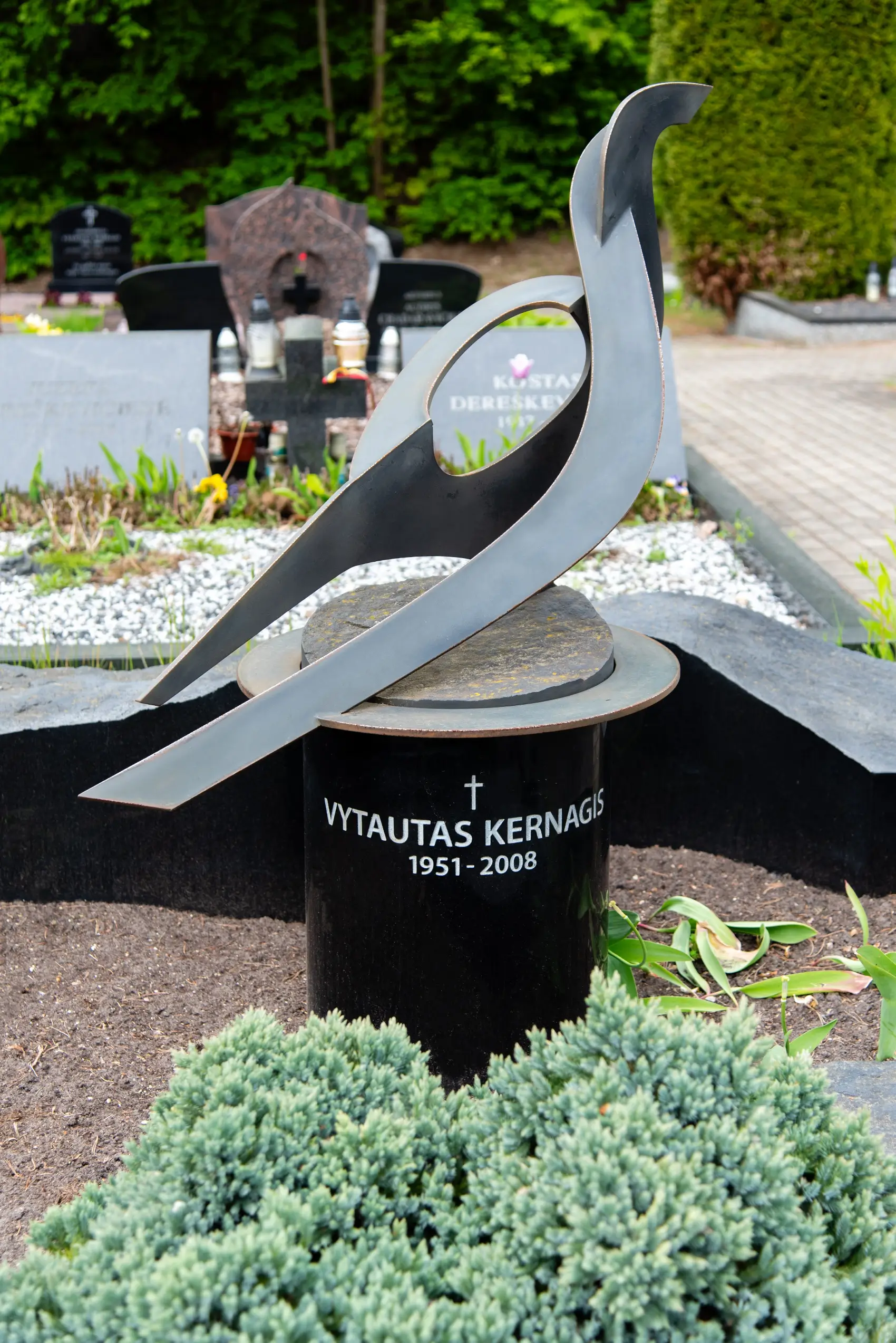 Menininkų kalnelyje, Antakalnio kapinėse Vilniuje, ilsisi legendinis Lietuvos muzikantas, aktorius ir visuomenės veikėjas Vytautas Kernagis. Jo atminimą įamžinantis skulptoriaus Algirdo Kuzmos sukurtas paminklas išsiskiria subtiliu meniniu sprendimu – granitinėje kompozicijoje nutūpusiu strazdu, simbolizuojančiu maestro kūrybos lengvumą, skaidrumą ir gyvybės tęstinumą. Menininkų kalnelis – vieta, kurioje ilsisi Lietuvos kultūros iškilūs asmenys, tampa dar prasmingesne vieta, puošiama šiuo minimalistiniu, bet gilia prasme pripildytu paminklu.