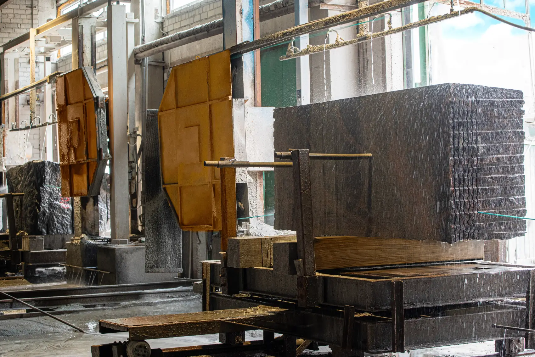 Akmens karjeruose natūralus akmuo kasamas masyviais blokais. Iš kruopščiai atrinktų į Lietuvą atgabentų granito blokų gaminami paminklai, interjero ir eksterjero apdailos elementai, skulptūros bei kiti ilgaamžiai gaminiai. „Žybartuva“ gamykloje turime specialią automatizuotą įrangą, leidžiančią patiems pjauti granito blokus ir luitus, o ne tik per tarpininkus užsakinėti jau supjautas plokštes. Todėl visada galime užtikrinti geriausią gaminių kainos ir kokybės santykį. Akmens blokus ir luitus pjauname deimantiniais trosais automatizuotomis staklėmis, tai padeda sumažinti pjovimo sąnaudas iki minimumo, nepakenkiant gaminio kokybei, nes užtikrinamas itin tikslus pjūvis.