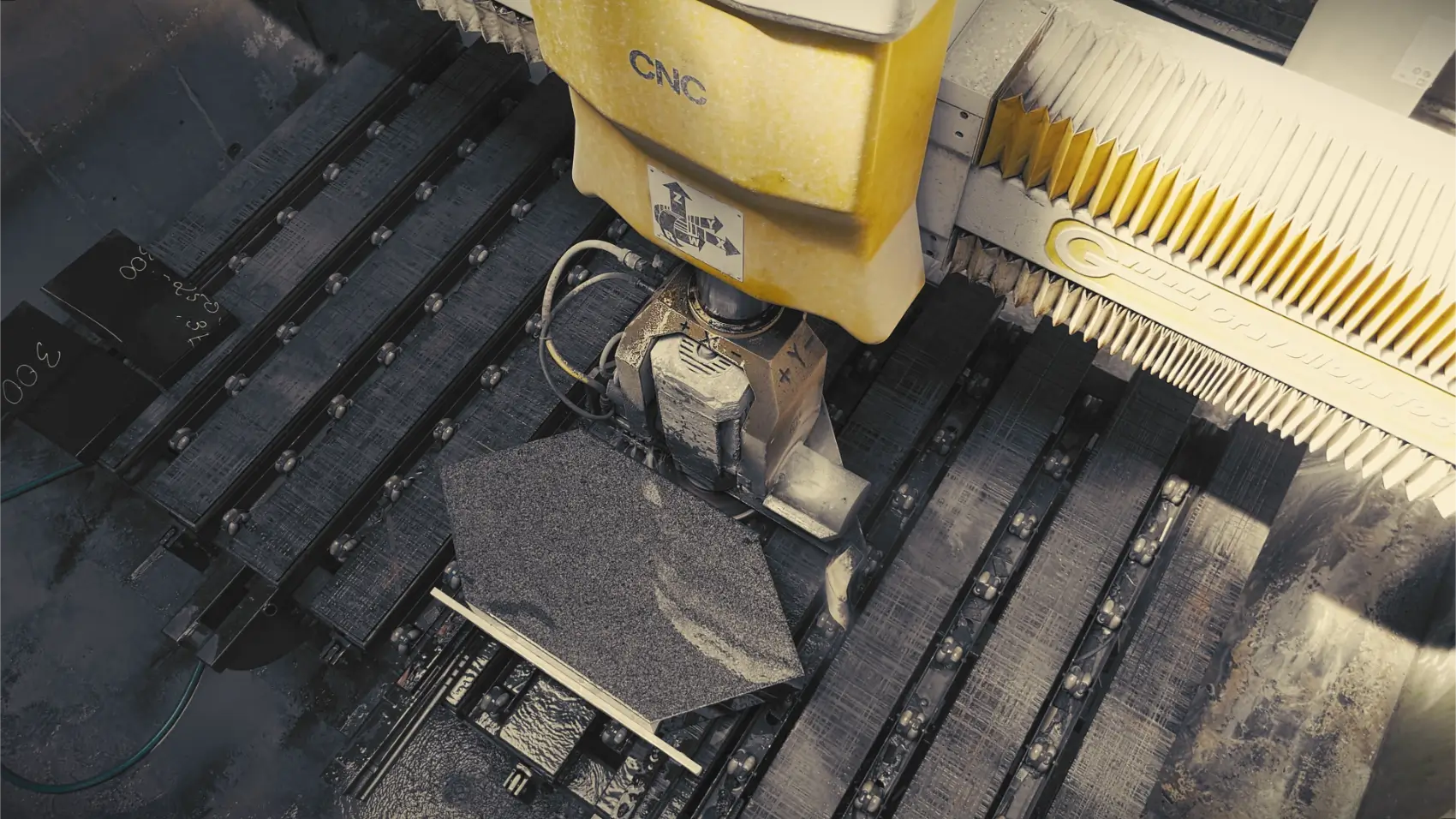 Akmens plokščių pjovimui naudojame net penkias skirtingų gamintojų iš Italijos, Prancūzijos, Lenkijos CNC automatines pjovimo stakles. Šią akmens pjovimo įrangą periodiškai atnaujiname ir tobuliname darbų procesus. Turima įranga leidžia atlikti itin įvairų pjovimo darbų spektrą – nuo tiesių plokščių iki sudėtingų figūrinių pjovimų pagal kompiuterinius brėžinius.